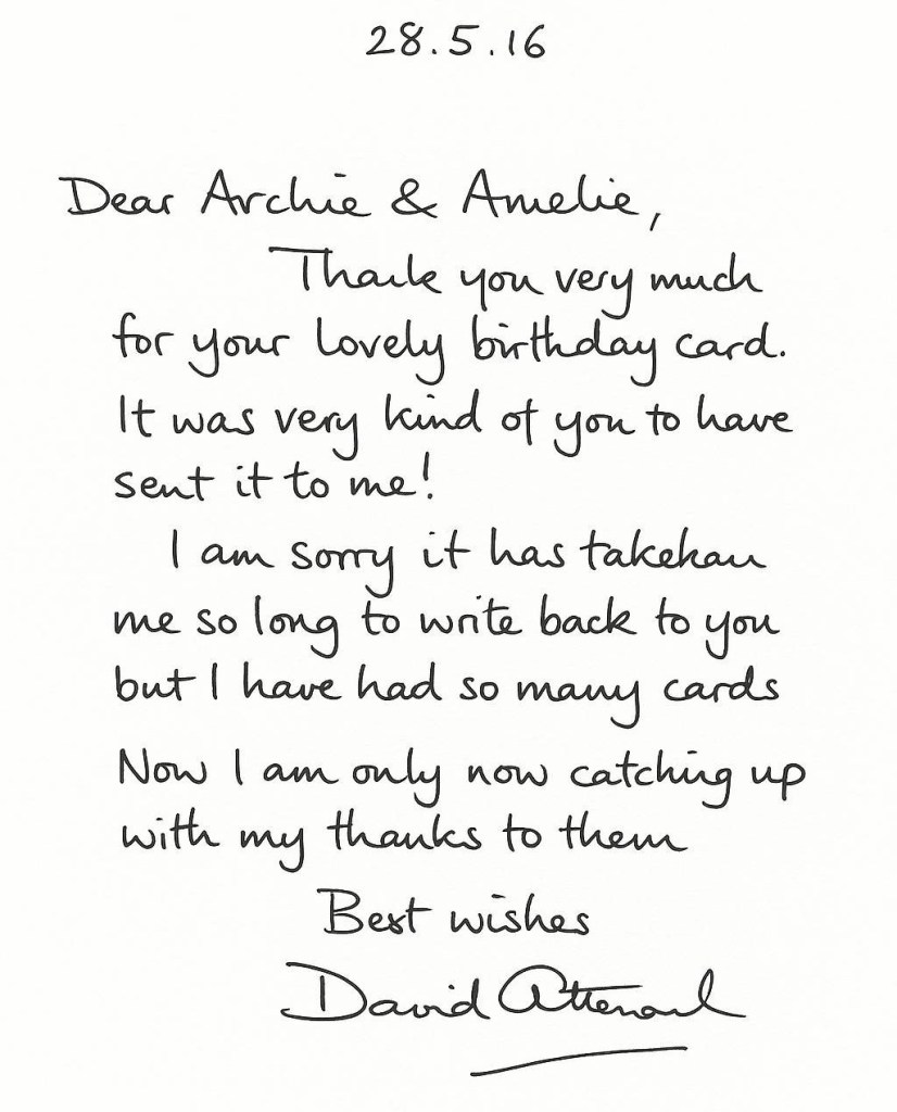 It’s hard not to feel a bit wistful watching Ocean with David Attenborough. The film was released to coincide with his 99th birthday. Here he is, as he says, near the end of his life – still fiercely intelligent, articulate and passionate about communicating the wonder of nature and the urgent need to protect it. My children sent him a birthday card for his 90th birthday. David Attenborough not only wrote back – but apologised that it had taken him so long to do so. He holds such a special place in so many people’s lives – I can only imagine how many thousands of birthday cards he must have received and to think he took the time to reply personally to every single one shows what a wonderful human being he is.